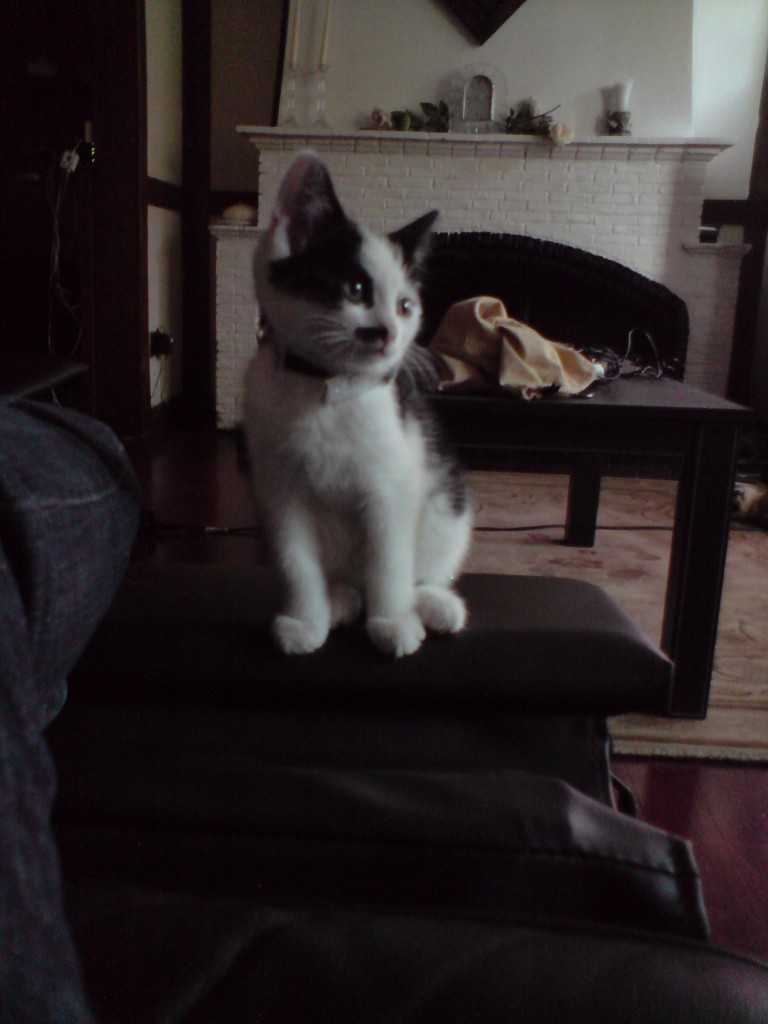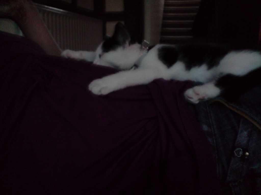 Saturday there was an event called the ACS Kings and Queens event, sponcered by MTV once again, there were quite a few models so we were called down on that disgusting hot day at 1pm. Surprise surprise we were’nt needed until 6ish, so we wasted all day there just mucking around. On our lunch break tho me and Hollie (Best friend/makeup artist) saw a petshop on our way to the Oceans Music arena where it was held, so we decided to run to tesco, grab some munch and look at the pets. I don’t recomend going into petshops unless u’ve got money on you, it’s TOO damn hard walking away empty handed. We say a sign that said they had kittens so we thought we’d ask. Hollie got the most gorgeous stripped tabby, he’rs is a month older but sooo cute and SO playful, it’s AWESOME. I got a cute but slightly timid black and white kitten! it took it a few days to warm up to its new surroundings but its been almost a week now and it wants to play with ful force! Toy of choice: Shoe lace lol. I named mine Ling Ling, after that pokemon type character in ‘Drawn Together’ and now to introduce the world to mah kiat!